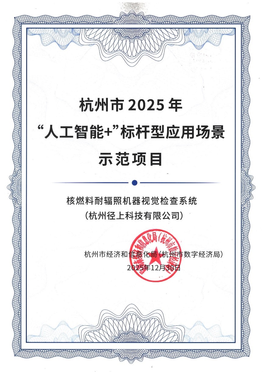 大會(huì)現(xiàn)場(chǎng),省市領(lǐng)導(dǎo)深刻解讀了相關(guān)行動(dòng)方案,并表彰了一批在人工智能領(lǐng)域表現(xiàn)突出的企業(yè)與項(xiàng)目,徑上科技憑借“核燃料耐輻照機(jī)器視覺檢查系統(tǒng)”成功斬獲杭州市2025年“人工智能+”標(biāo)桿型應(yīng)用場(chǎng)景示范項(xiàng)目榮譽(yù),程喬喬(前排左二)代表徑上科技上臺(tái)領(lǐng)獎(jiǎng)。